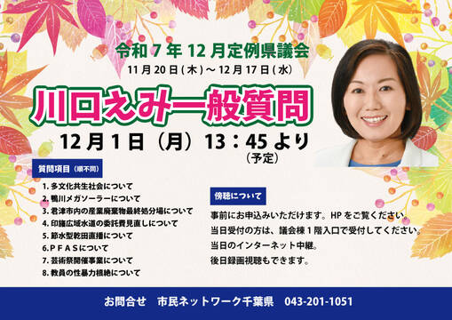 2019年10月20日 / 最終更新日 : 2022年2月6日 市民ネットワーク千葉県 県議会 伊藤とし子の県議会リポート(2019年10月) 9月県議会で一般質問しました 県議団アメリカ西海岸視察 水道料金の奇々怪々 佐倉市・酒々井町選出県議の態度表明 PDFによる表示・ダウンロード:県議会リポート(2019年10月) 画像をクリックすると拡大します FacebookXHatenaCopy