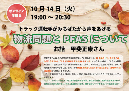 オンライン学習会「トラック運転手がみちばたから声をあげる~物流問題とPFASについて」(10/14)