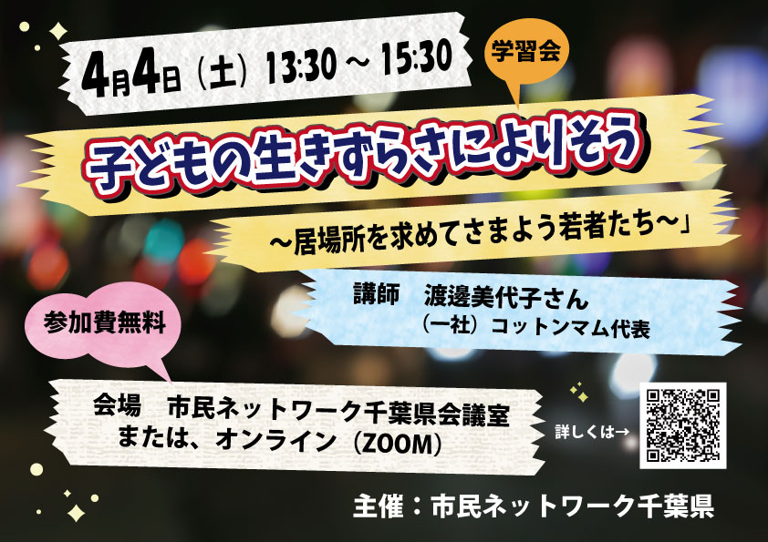 市民ネットワーク千葉県は、タイムリーな話題を学ぶオンライン学習会を開いています